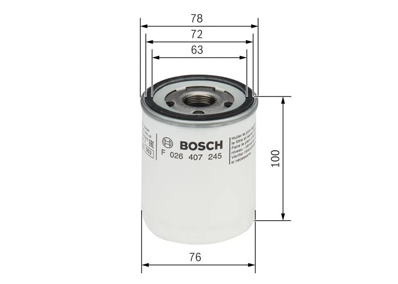 Der Ölfilter mit der Teilenummer F 026 407 245 von BOSCH schützt Ihren Motor, indem er Schmutz und Verbrennungsrückstände herausfiltert. Dieser Ölfilter (F 026 407 245) hält Ihr Öl sauber und verlängert die Lebensdauer Ihres Motors. Regelmäßiger Wechsel – alle 15.000 km bei Benzinmotoren bzw. 30.000 km bei Dieselmotoren – beugt Verschleiß und Schäden vor.